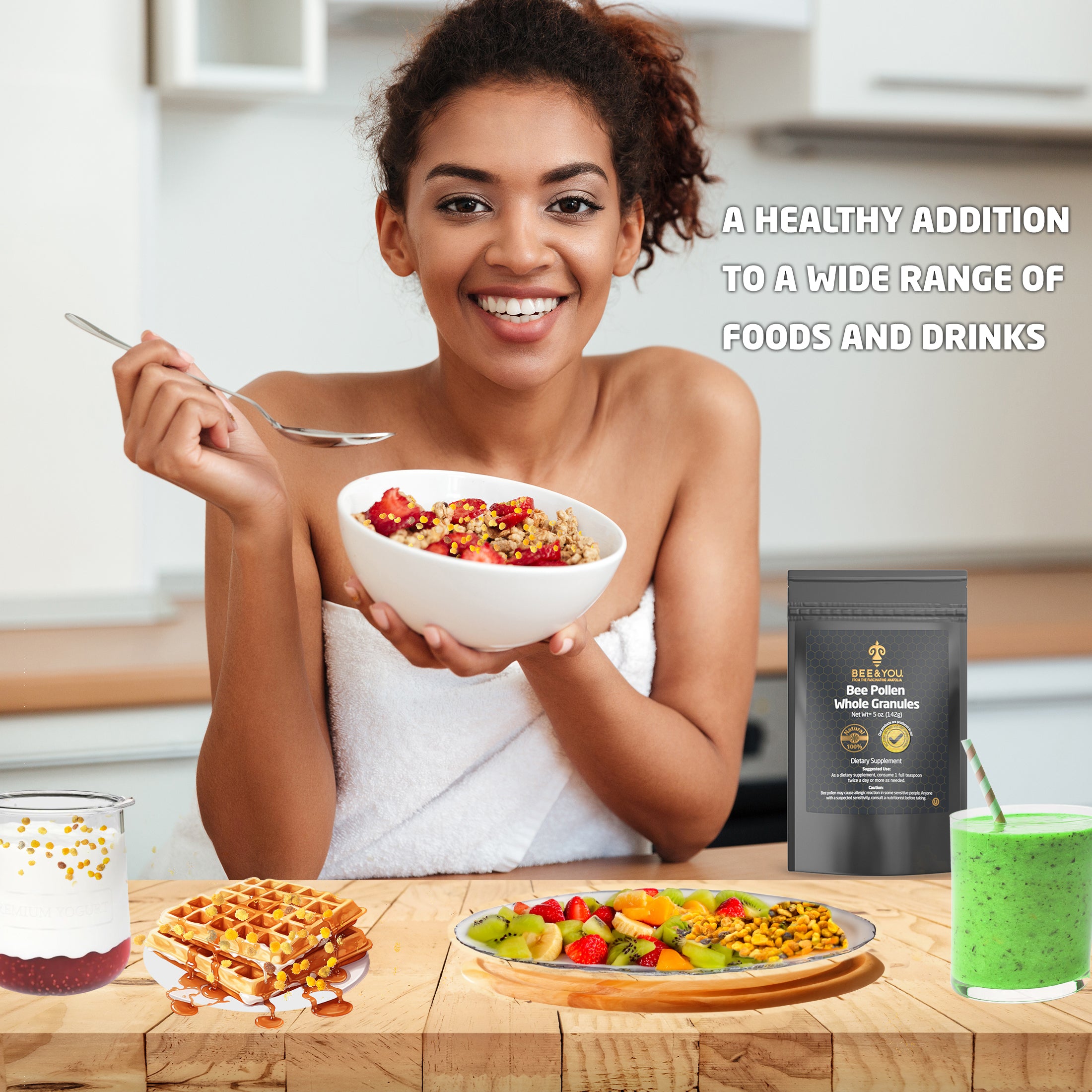 IMMUNE SUPPORT SUPERFOOD*: Bee Pollen is cited as a “nature’s most complete food" after mother’s milk and egg, due to its rich nutrient content. You can consume it with your favorite recipes. (Granola, yoghurt, salad, etc.)