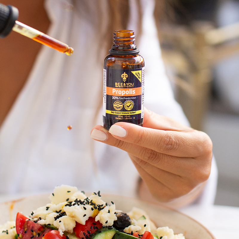PROPOLIS*: is a natural bee product that honeybees collect from the leaves, buds and stems of the plants. It acts as a natural protective barrier. We source our propolis from pristine Anatolian mountains which is home to 12,000 different plant species and one of the most biodiverse regions in the world.