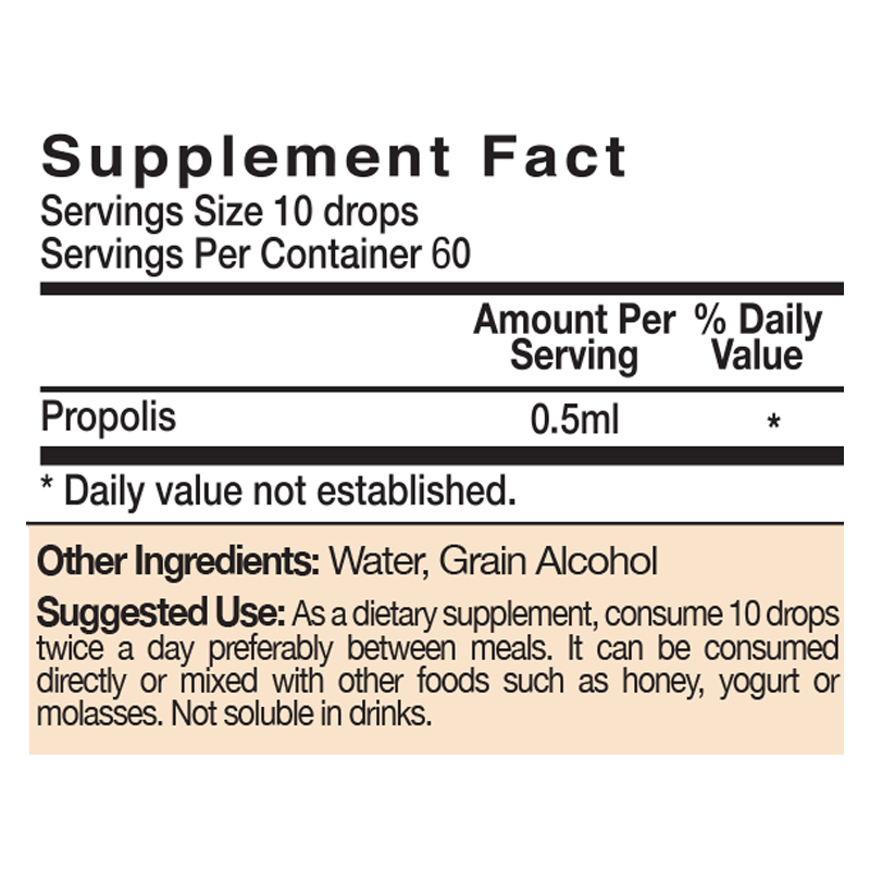 Ingredients: Anatolian Propolis, Purified Water, Grain Alcohol (Food Grade)
